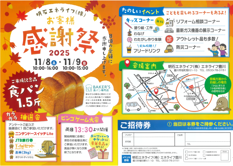【エネライフ豊川】 感謝祭のお知らせ